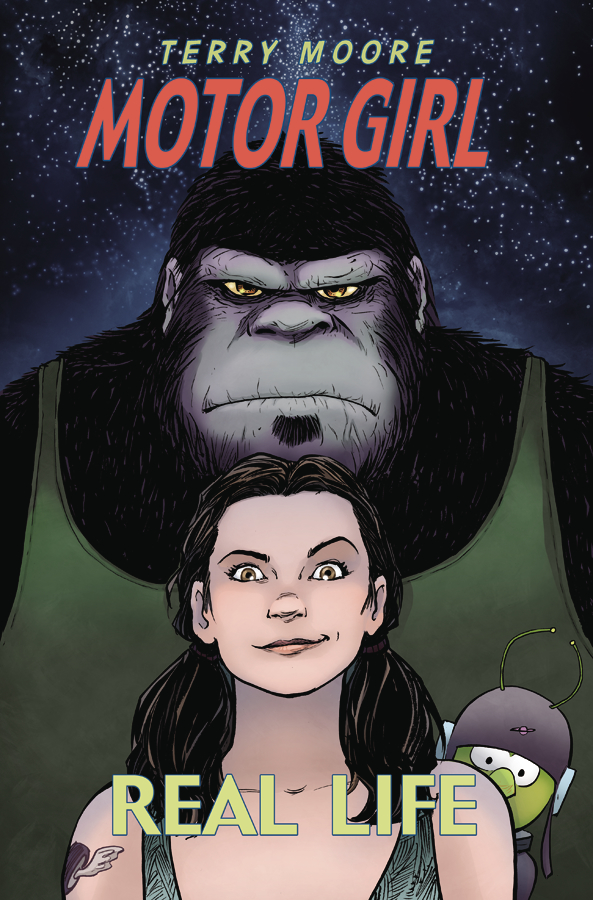 When a UFO crashes into her desert junkyard, Samantha and her imaginary gorilla friend, Mike, repair the ship and win the heart of the little green pilot named Bik. Now an industrial tycoon wants to seize the property so he can install his new anti-UFO weapon but Samantha is determined to stop him. What happens next is out of this world in Terry Moore's new series, Motor Girl!