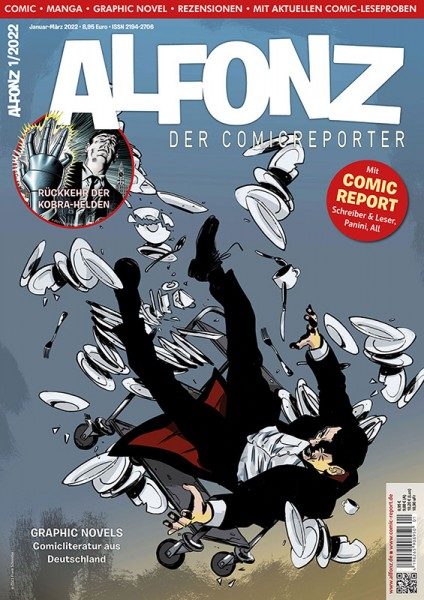 Literatur als Comic: ALFONZ stellt Adaptionen deutscher Belletristik vor, allen voran Frank Schmolkes Comicfassung des Psychothrillers Der Augensammler von Sebastian Fitzek und Jurek Malottkes Adaption des Horrorromans Phantasmen von Kai Meyer. Außerdem ein Porträt über Barry Windsor-Smith, das Comeback der Kobra-Helden, u.v.m.